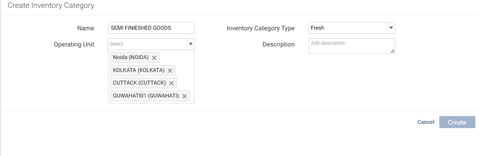 5. Click on Create to save the new inventory category.