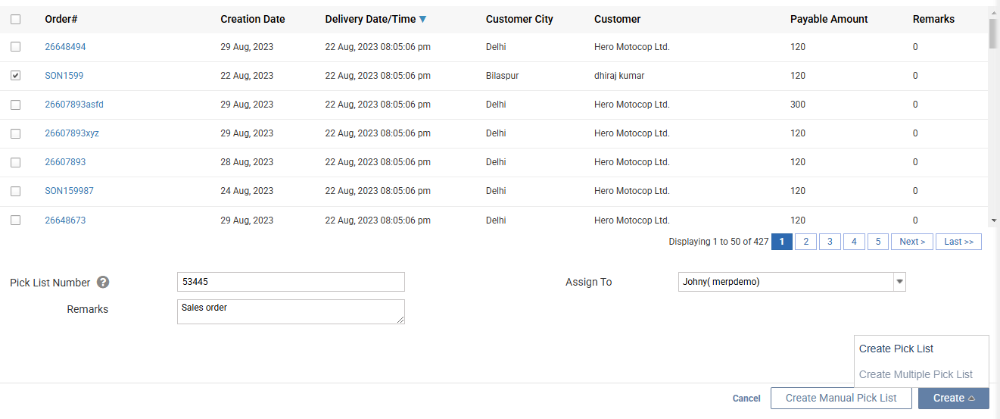 5. Click Create Picklist for a single sales order or select Create Multiple Picklists if managing multiple sales orders.