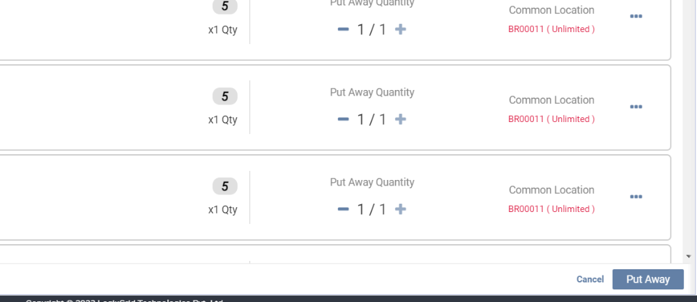 5. Step 5: Click on the Put Away button icon to finalize the process.