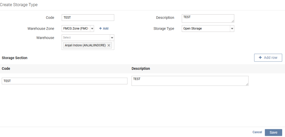 • Storage Type: Choose the appropriate type (e.g., Bulk Storage, Shelf Storage).