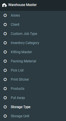 A Storage Type is defined based on the space or area occupied by a product or item, such as: